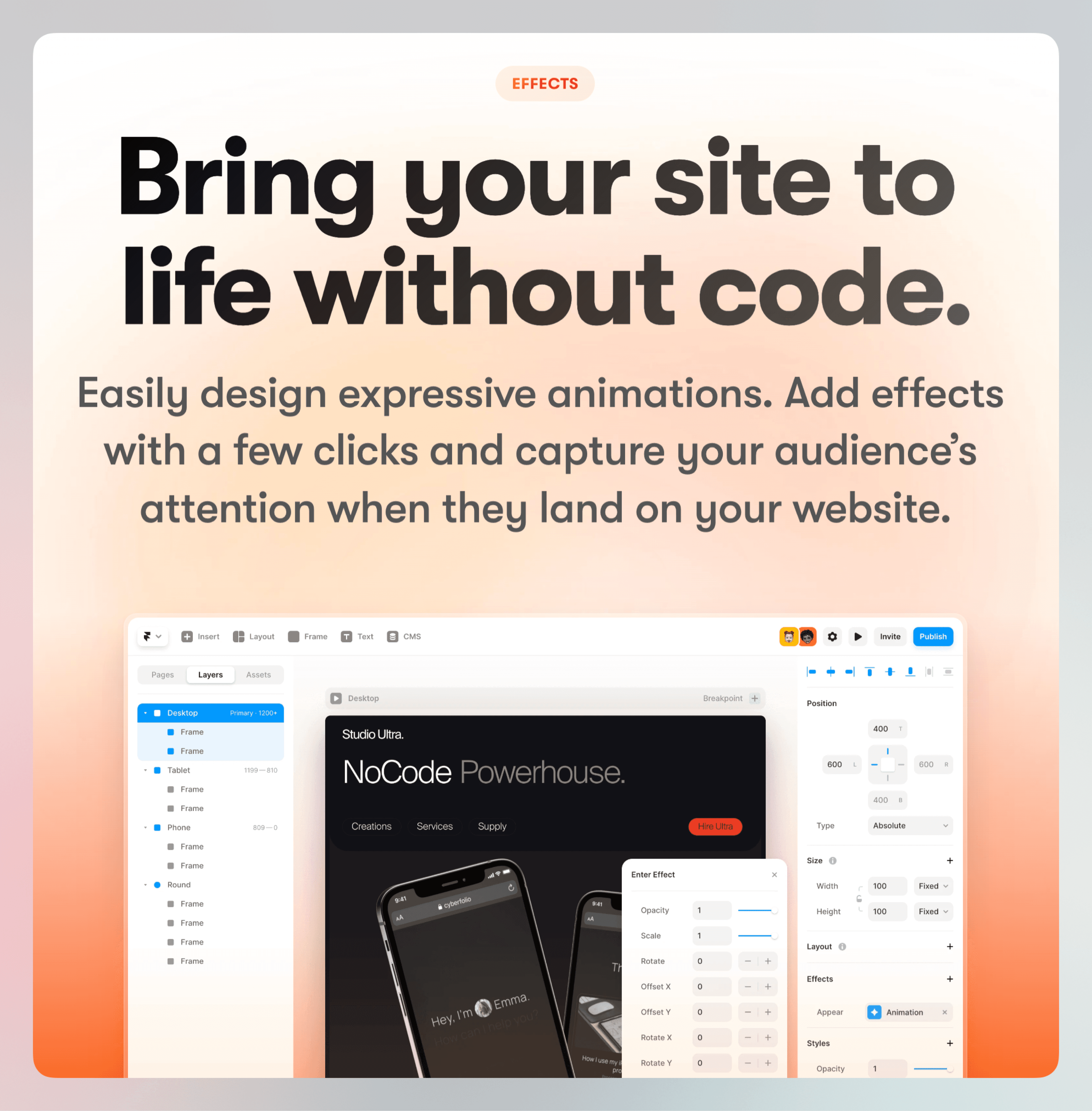 Today, Framer is now the top web builder for professional website design, allowing you to ship your designs from the canvas directly to production.
