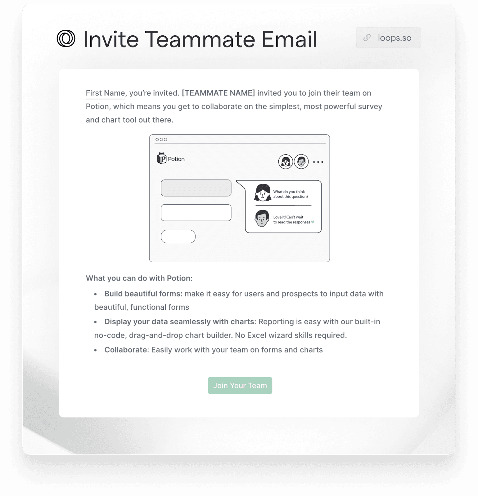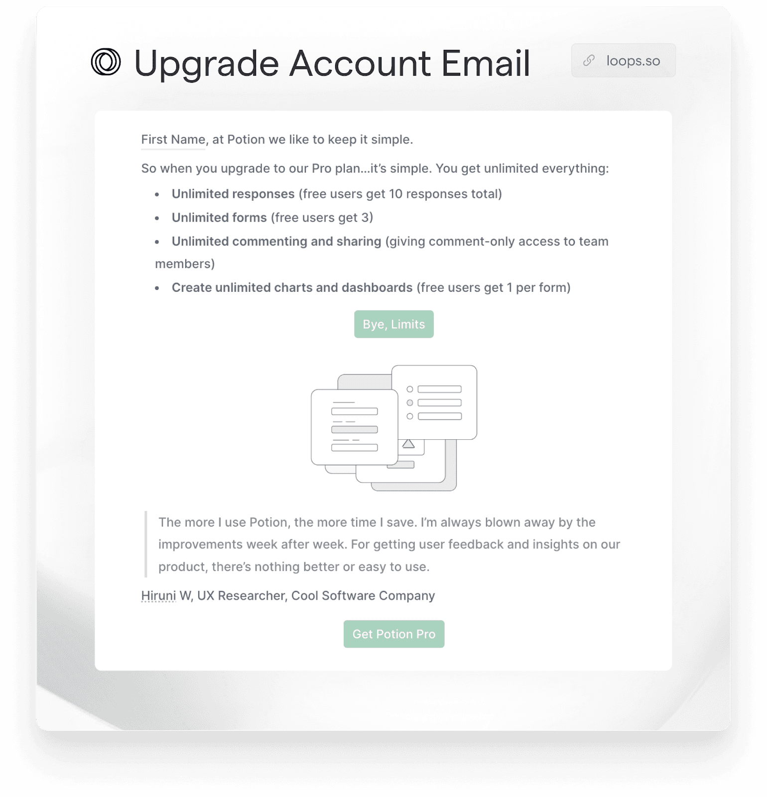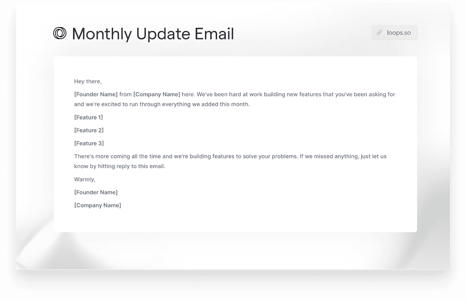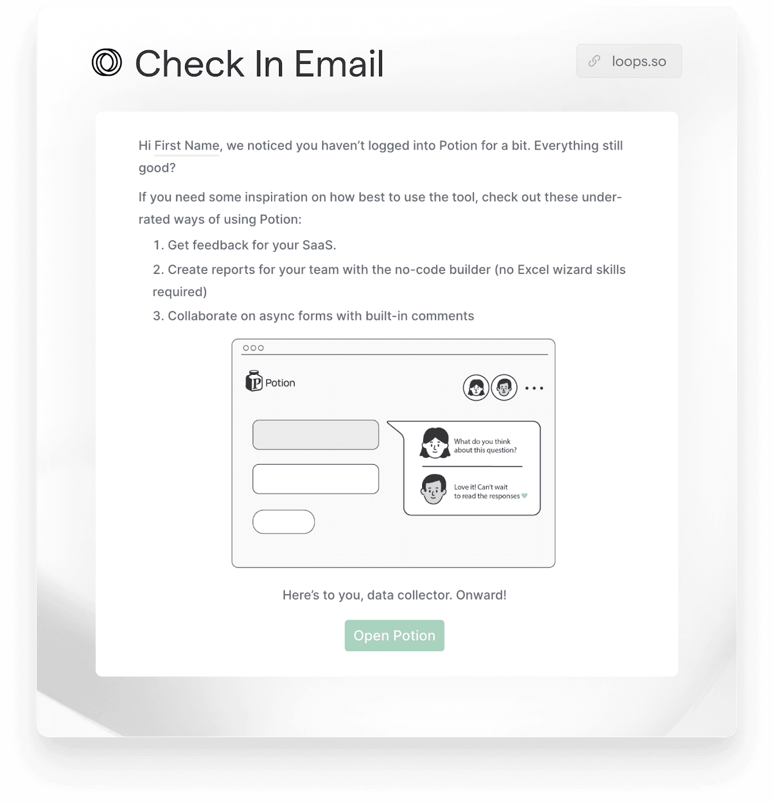 At Loops, we have ready-to-go (and proven to work!) templates for you to integrate throughout your SaaS email flow to ensure that your customers are always up to date and using your product as intended.