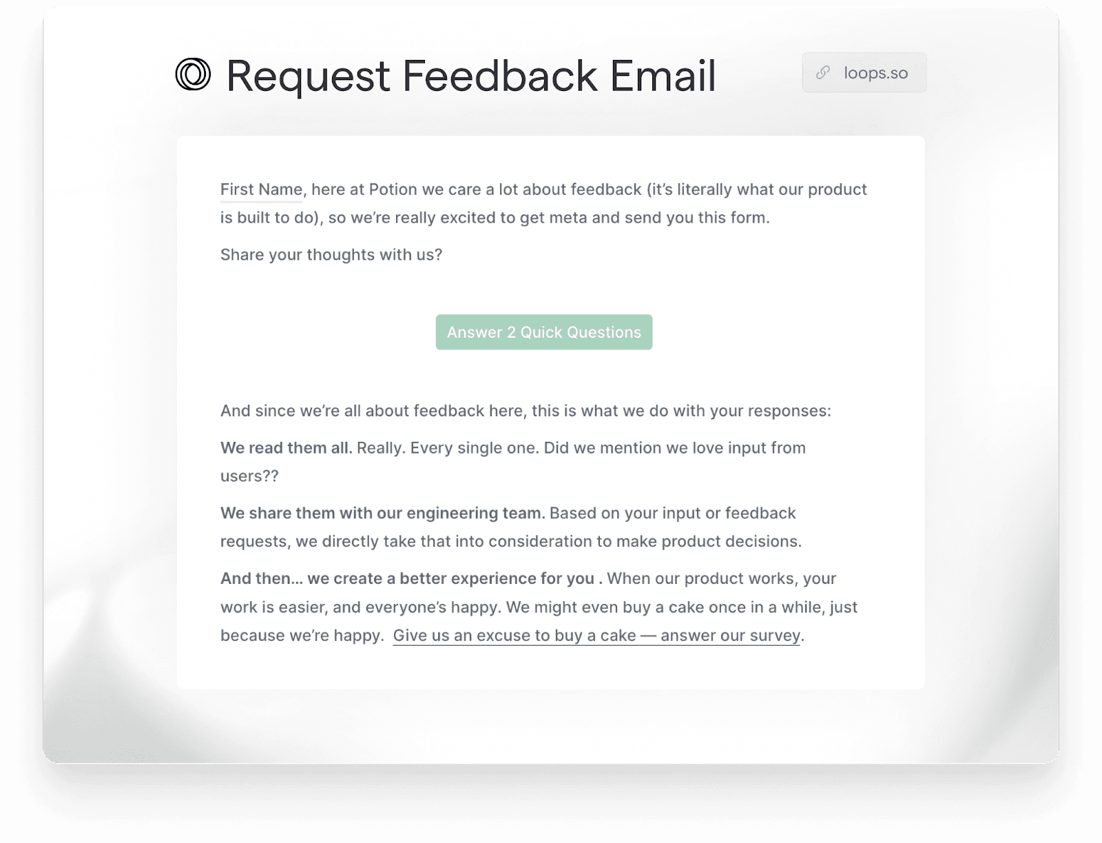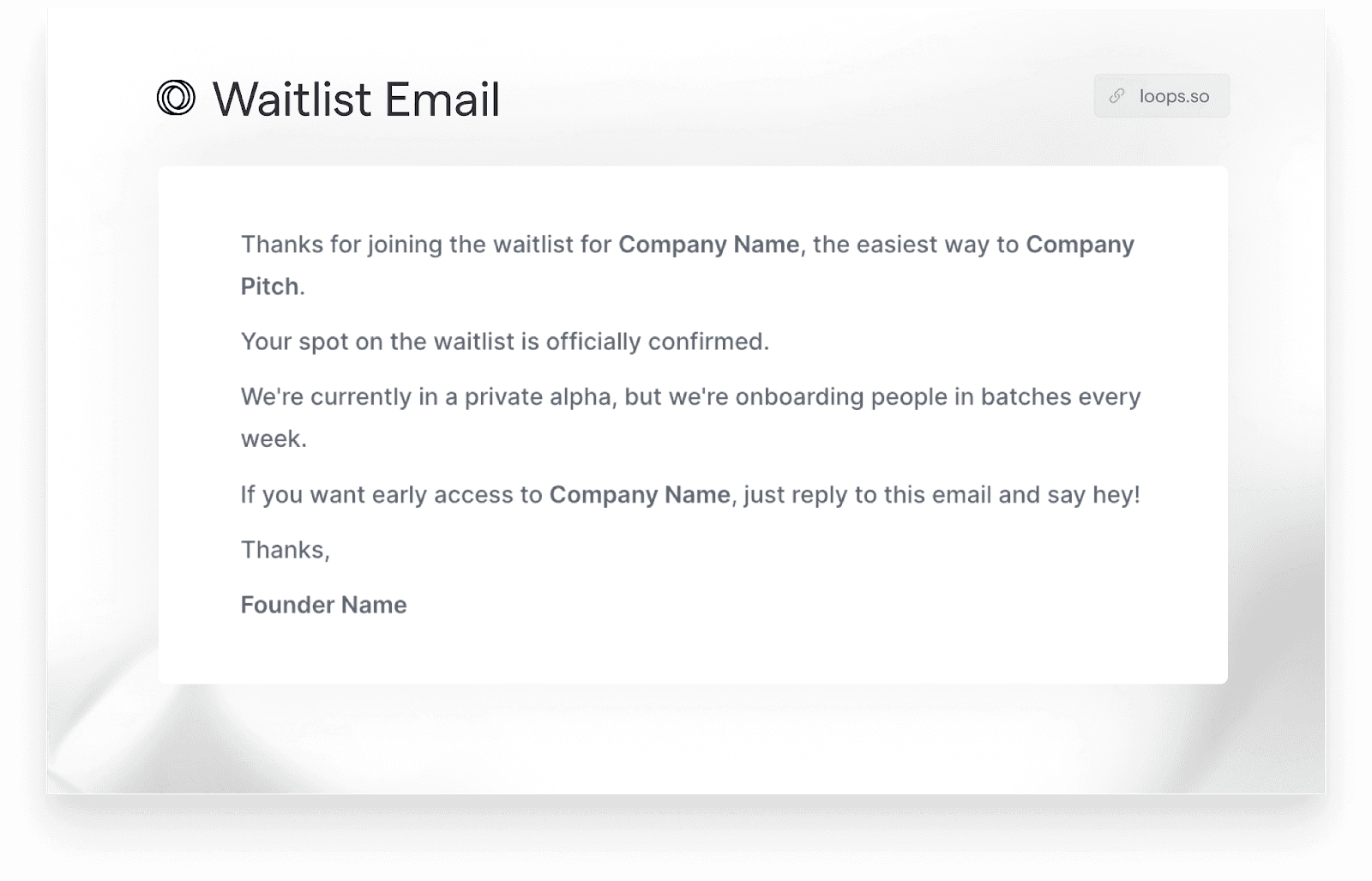 We’ve had a ton of success at Loops by sending an email directly from one of the founders of Loops with a call to action to reply to the email to get early access to the product. It starts an early line of communication with your end user while also serving to improve open rates and deliverability as Gmail learns that the email is valuable and should be delivered since users often respond to it!