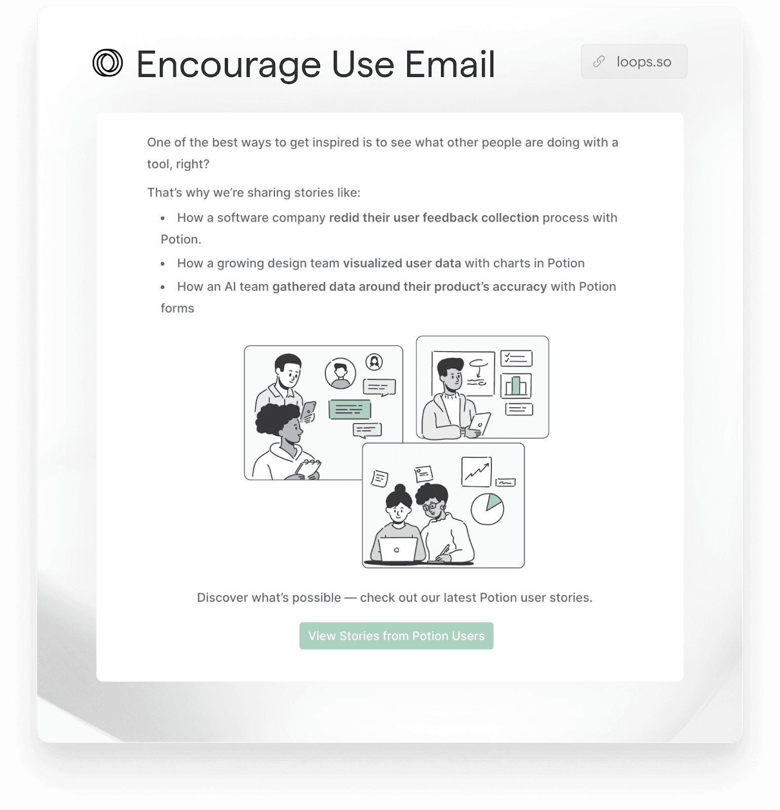 It is likely that your new customer heard about your product through someone else other than yourself. Use the social proof of others to highlight what your product can be used for to encourage your new customers to push the boundaries and up their overall usage of your product.